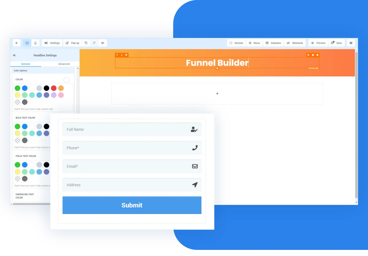 Use our drag-and-drop form and funnel builders to create landing pages that convert traffic to leads that get stored in GrowCRM.